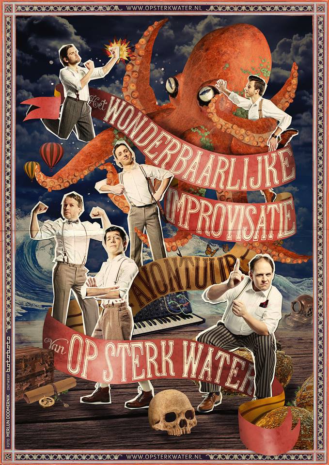 Een wonderbaarlijke ontdekkingsreis. Dat wordt het. Een onbekende tocht langs snelle grappen, intelligente invallen en ter plekke verzonnen vergezichten. Op Sterk Water is de absolute top van het impro-cabaret. Ze voeren je in een kolkende stroom mee tot voorbij de horizon van de verbeelding. Langs griezelig herkenbare situaties en langs plekken waar geen mens ooit is geweest. Met interactief decor, visuele gimmicks, vlijmscherpe humor, muzikale hoogstandjes, maar vooral: virtuoze improvisatie. Ga het avontuur aan en beleef een avond zoals je die nooit eerder hebt beleefd. Of, zoals het viersterrenreisadvies van de Volkskrant luidt: ‘Op Sterk Water, er is geen betere!’